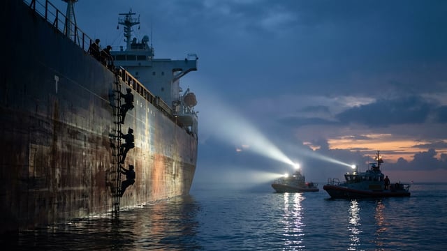 US Coast Guard forces, assisted by the Department of Defense, conducted a pre-dawn boarding operation on the oil tanker 'Centuries' off Venezuela's coast on Saturday. The Panama-flagged vessel had recently been docked in Venezuela and was stopped in what officials described as a 'consented boarding,' with the tanker voluntarily allowing US forces aboard. This follows a similar seizure on December 10 of the vessel 'Skipper,' which was part of Venezuela's shadow fleet. Unlike the Skipper, the Centuries appeared to be properly registered according to maritime industry databases, though it was carrying sanctioned Venezuelan oil.